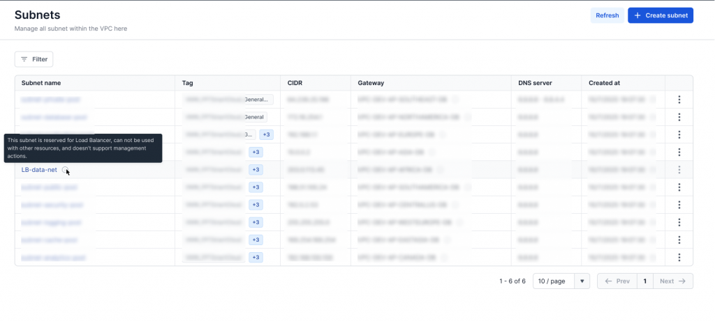 Bước 1: Ở menu chọn Subnet, hệ thống sẽ hiển thị ra danh sách Subnet tương ứng