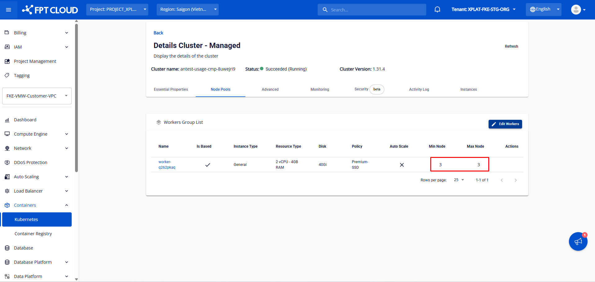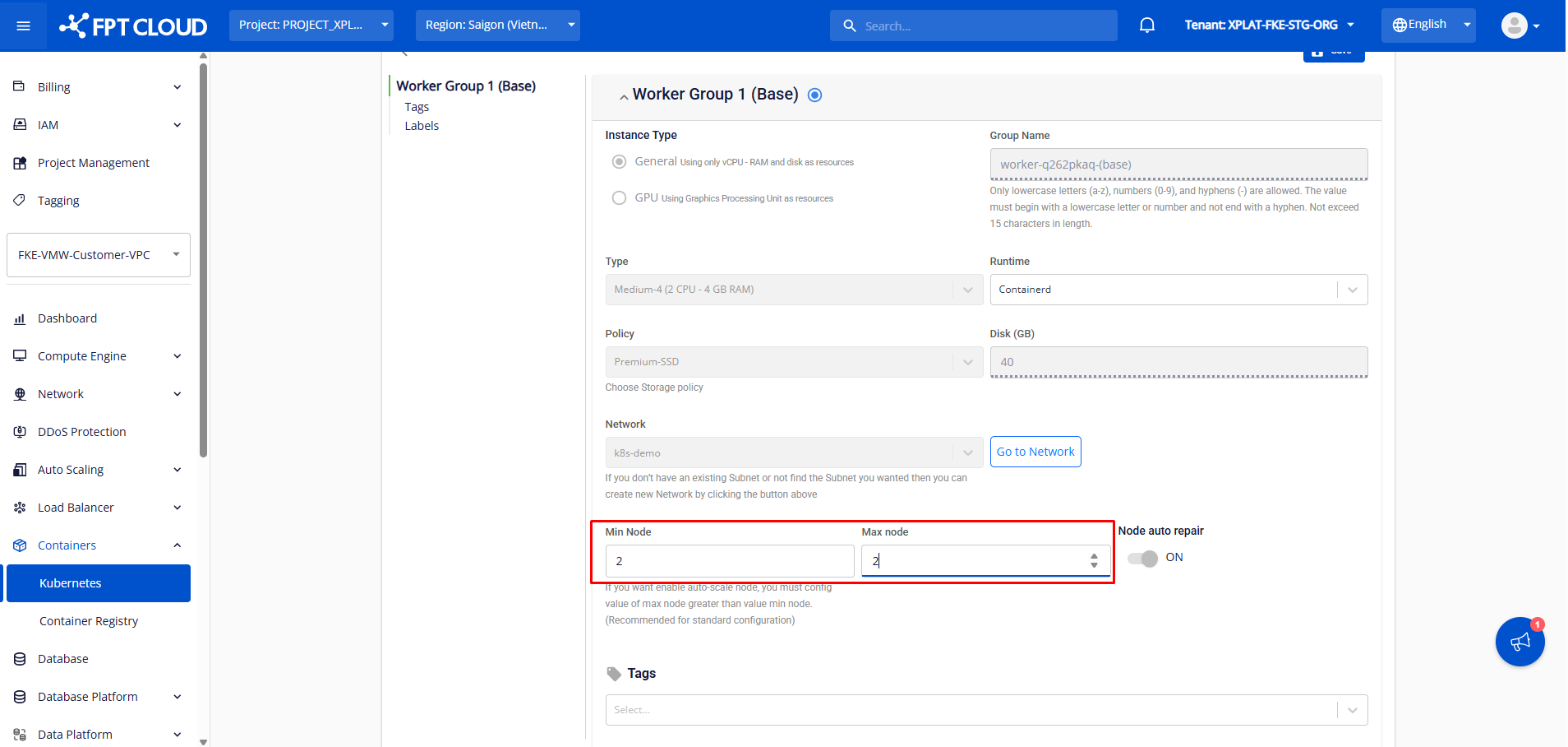 Bước 2: Sau đó thực hiện manual scale down worker group trên portal bằng việc điều chỉnh min-max node trong worker group.